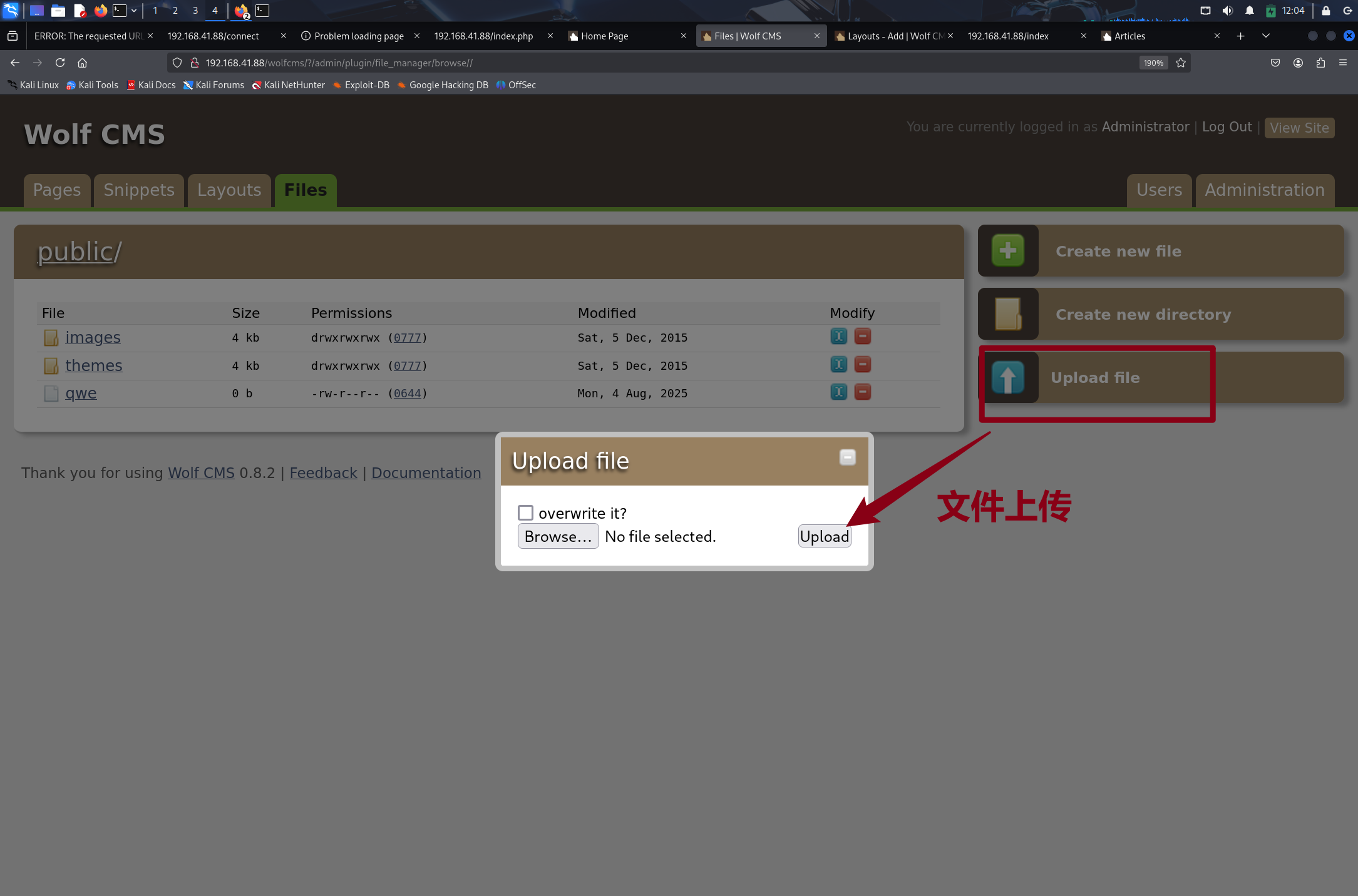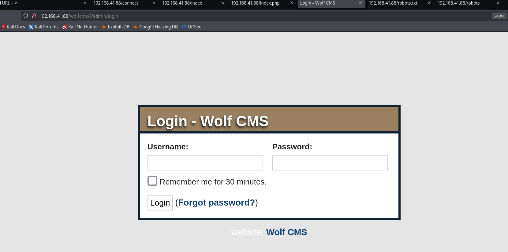 发现 wolfcms,尝试 URL